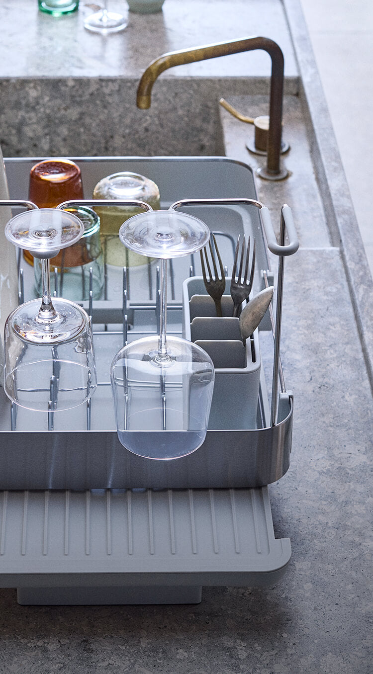 Extend™ Ausziehbares Abtropfgestell aus Edelstahl mit Weinglashalterung in stein