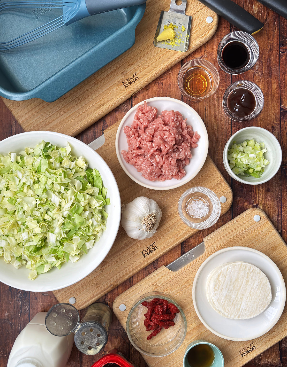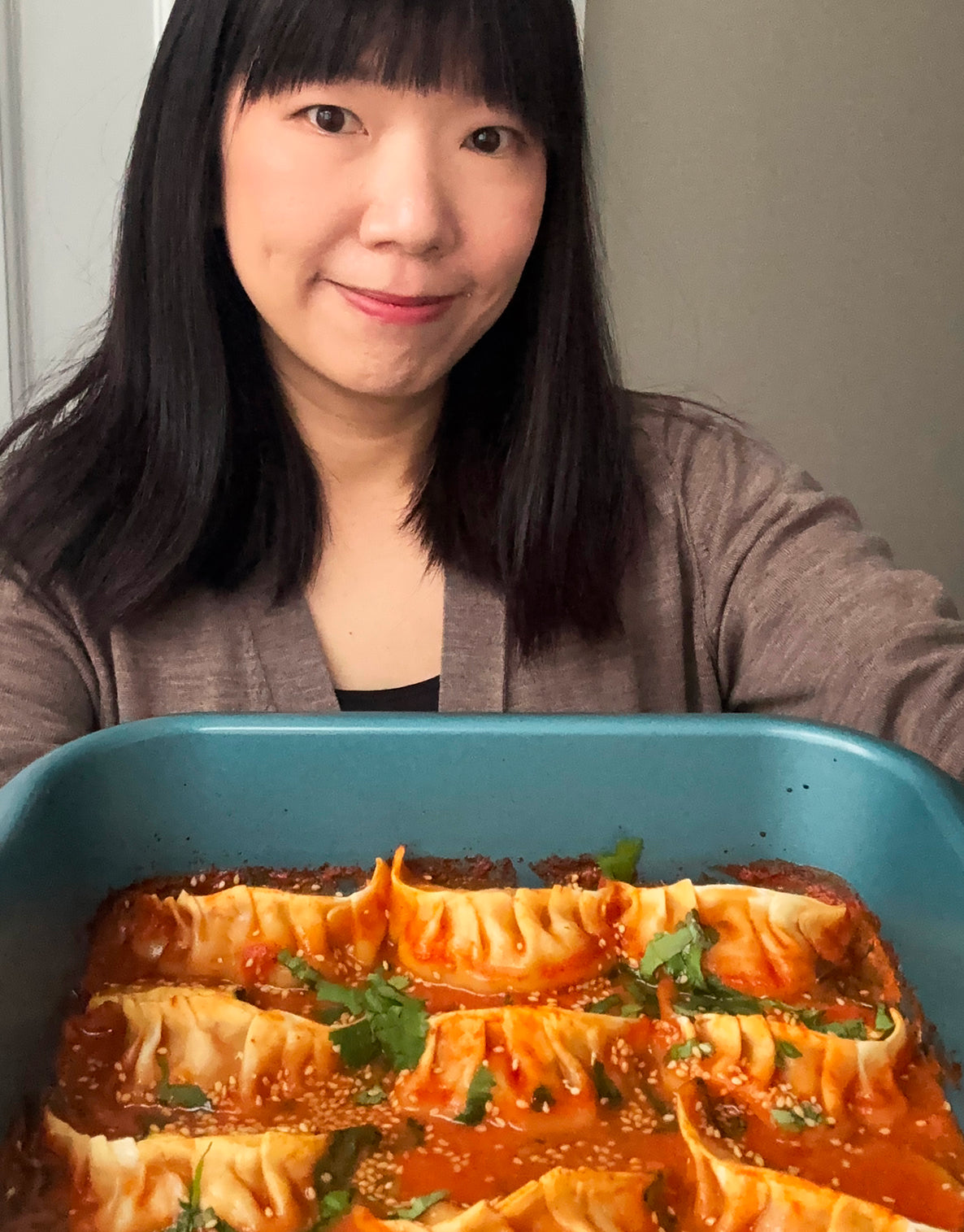 Dieses cremige, von der koreanischen Küche inspirierte Gericht mit gebackenen Teigtaschen aus einer Pfanne bietet die perfekte Balance zwischen Komfort und Geschmack. Handgemachte Teigtaschen mit Kohl und Schweinefleisch werden in einer reichhaltigen Gochujang-Sauce gebacken, bis sie cremig sind und Blasen werfen. Alles in einem Blech für eine einfache, sättigende Mahlzeit.