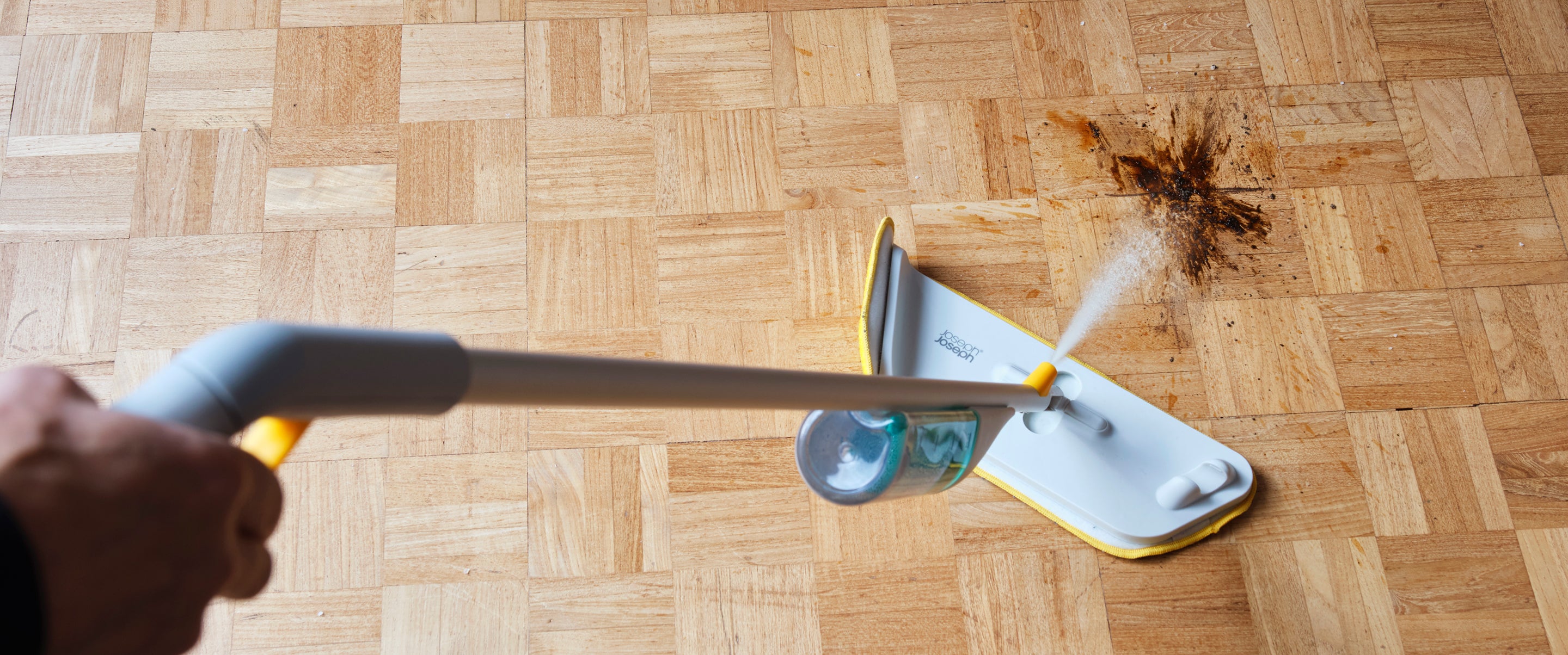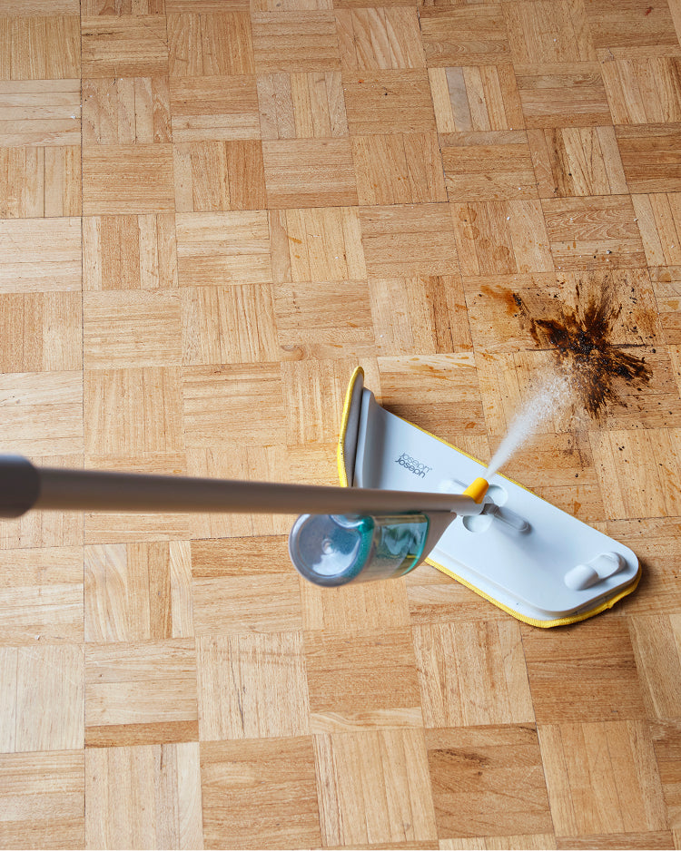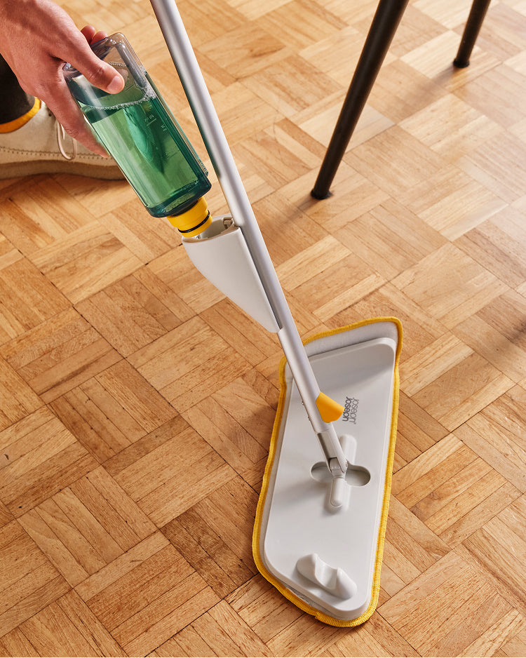 - Sprühwischmopps, wie der Joseph Joseph CleanTech™ 2-in-1 Sprühwischmopp – die über einen integrierten Mechanismus zum einfachen Auftragen von Reinigungsmittel verfügen – eignen sich hervorragend zum Aufwischen von Verschüttetem und zum Erreichen von Bereichen unter Schränken und Tischen, die mit anderen Mopps nur schwer zu erreichen sind.