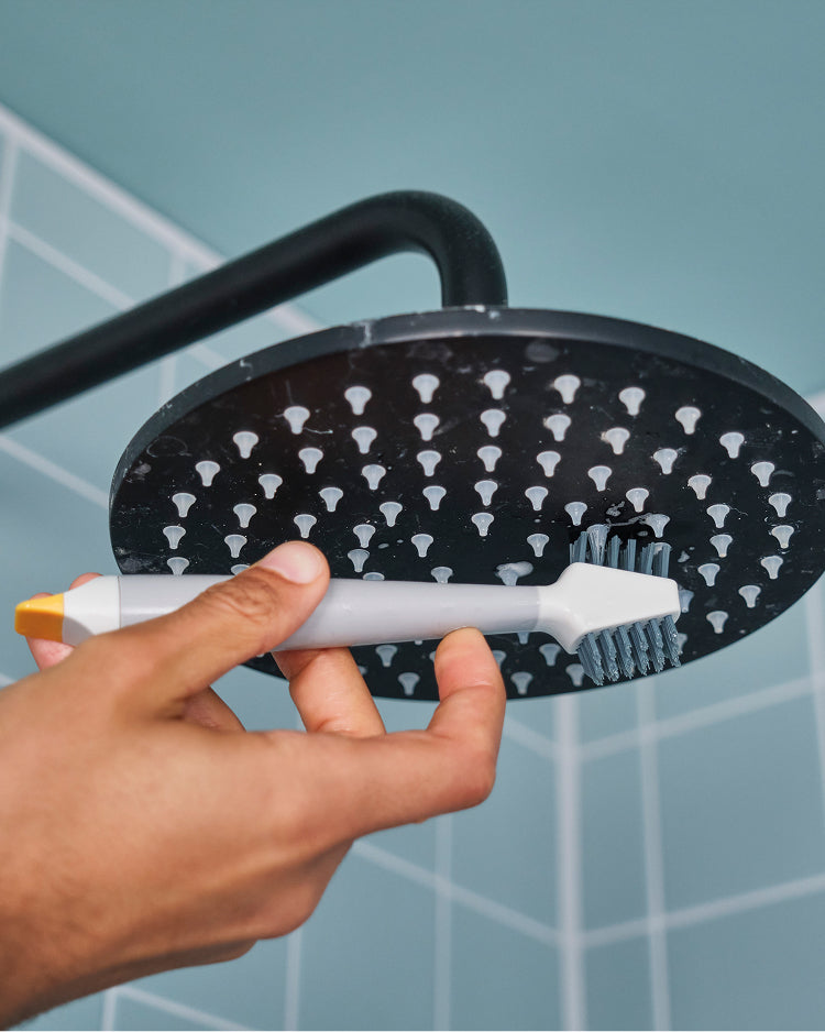 Bei Hartholzböden sind Mikrofaserpads nützlich, da sie nicht viel Wasser aufnehmen, sodass das Holz nach dem Wischen leichter trocknen kann. Wenn Ihre Böden aus Stein oder Schiefer bestehen oder aus Fliesen mit viel Struktur, sollten Sie neben Ihrem Mikrofasermopp auch eine wasserfeste Bürste mit harten Borsten wie unser 2-in-1-Fliesenreiniger in Ihre Reinigungsroutine aufnehmen, damit Sie Flecken oder Schmutz entfernen können.