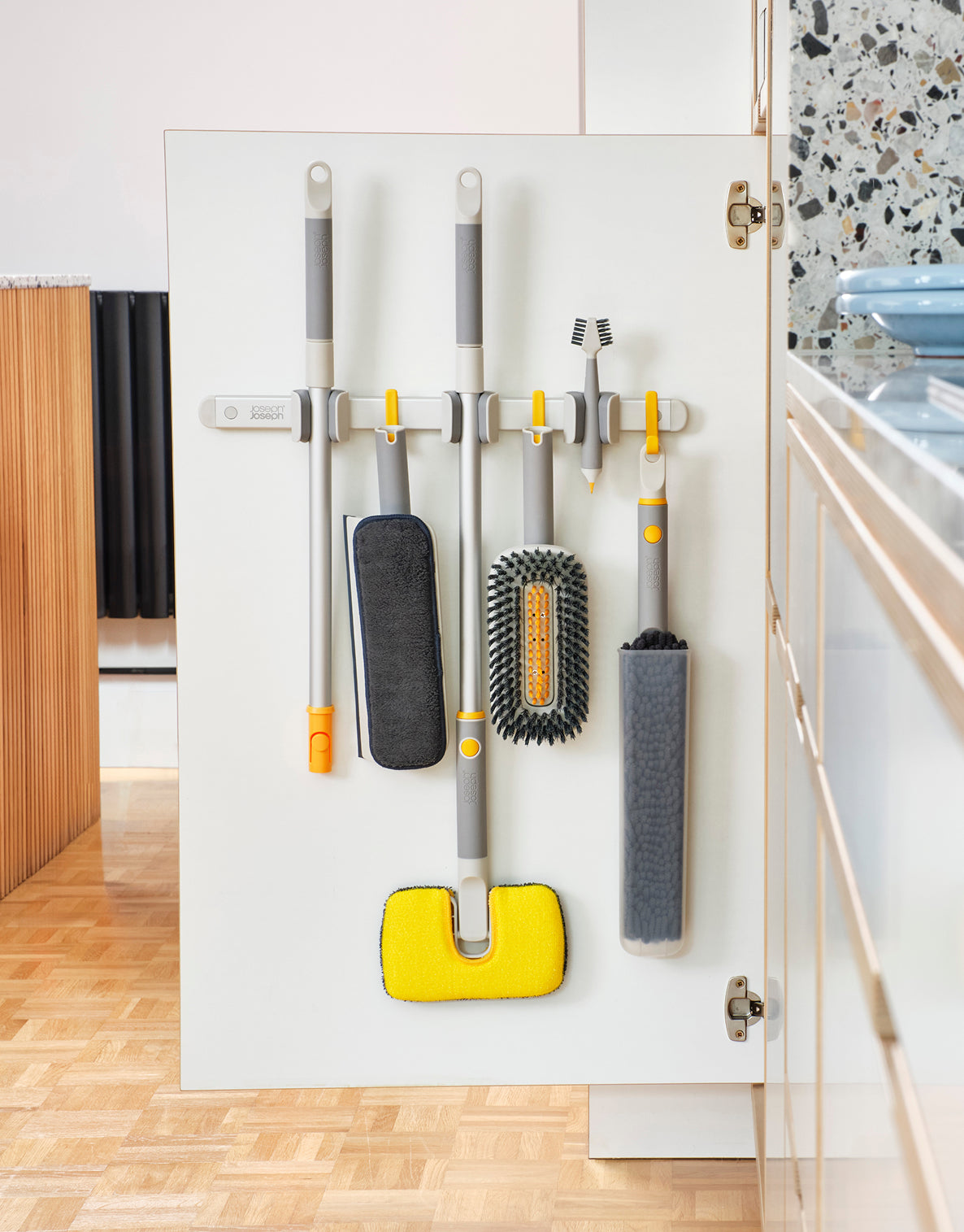 Beginnen Sie damit, Staub, Haare und andere Ablagerungen wegzufegen. Ein Besen wie der CleanStore™ Wandbesen macht diese Arbeit schnell und einfach und verhindert, dass alter Staub und Schmutz zurück auf Ihre Böden gelangen.