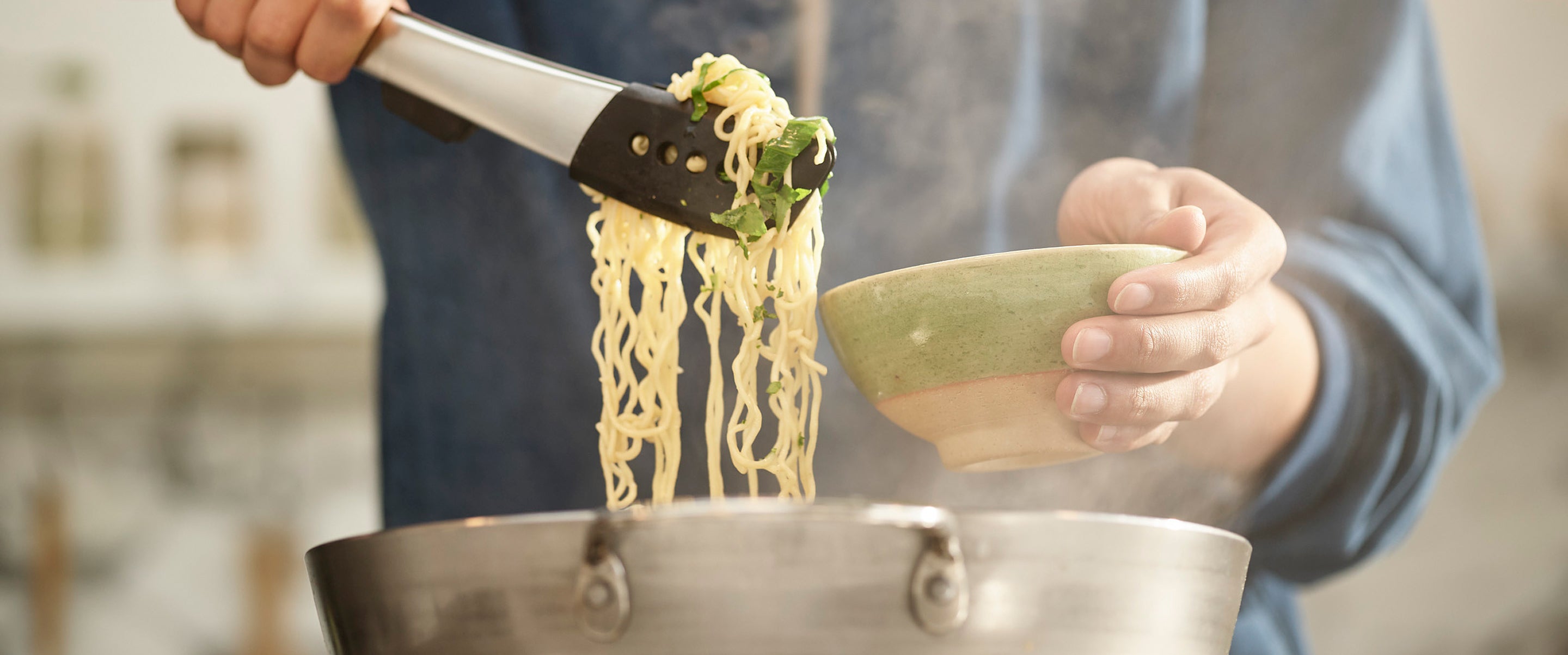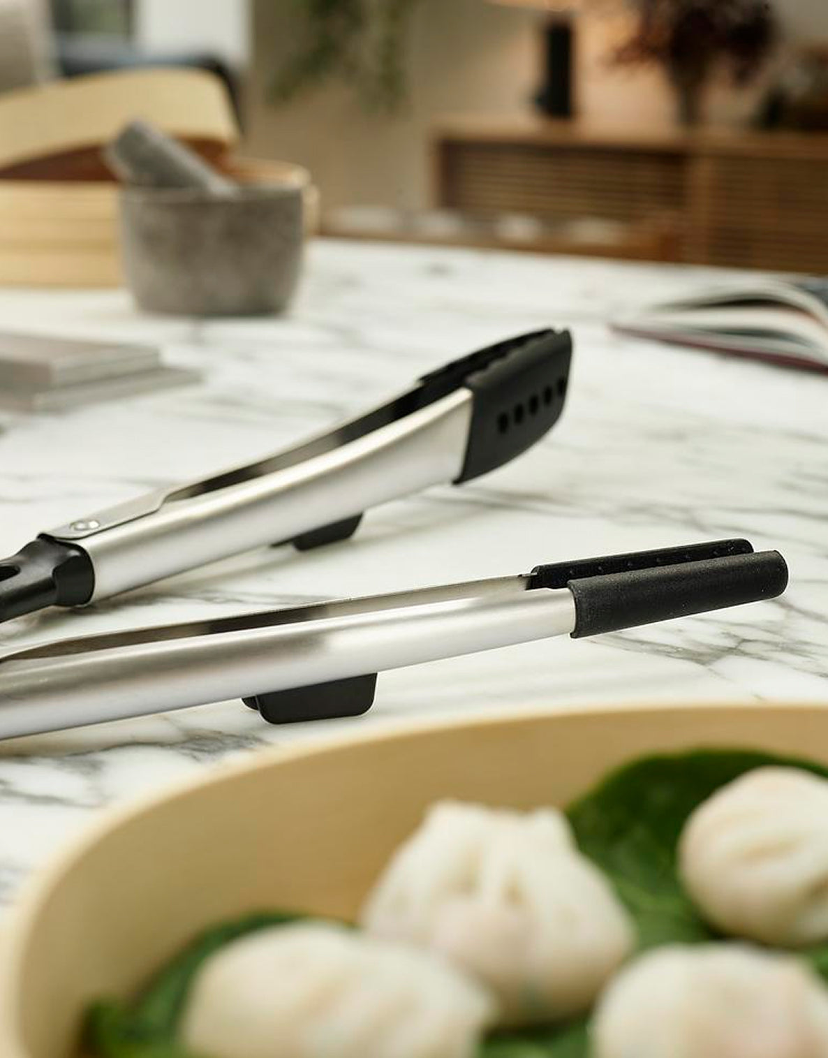 Eine robuste Zange ist das ideale Utensil zum Umdrehen, Wenden und Servieren von empfindlichen Lebensmitteln. Die Elevate™ Fusion Zange ist mit Silikon-Spitzen ausgestattet, um Kratzer an Kochgeschirr zu vermeiden, und verfügt über einen cleveren