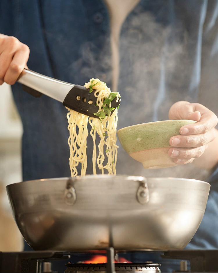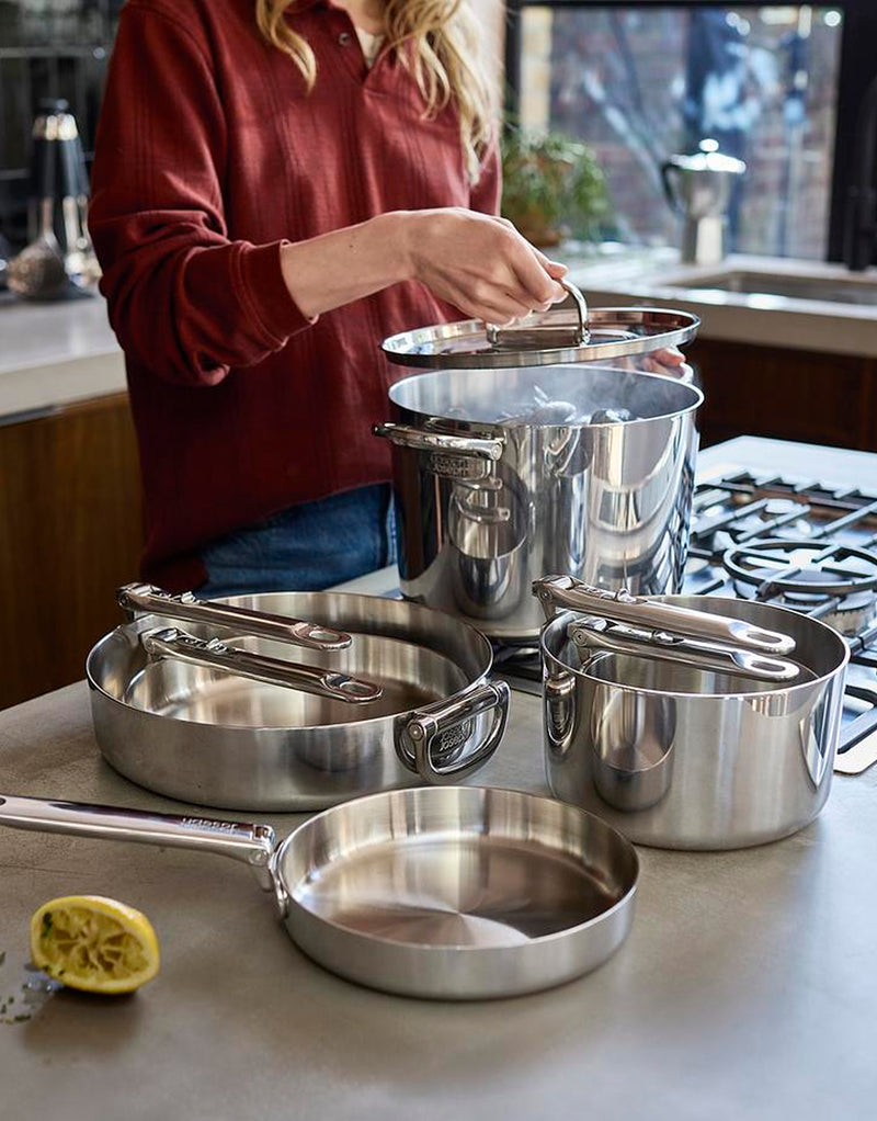 Professionelle Köche verlassen sich auf hochwertige, vielseitige Werkzeuge, die zuverlässig unter Druck funktionieren. Ein scharfes Kochmesser, Zangen und langlebige Schneidebretter sind für ihre täglichen Aufgaben unerlässlich. Bei Kochgeschirr bevorzugen sie langlebige Materialien wie Edelstahl gegenüber weniger beständigen (aber möglicherweise praktischeren) Antihaft-Alternativen.