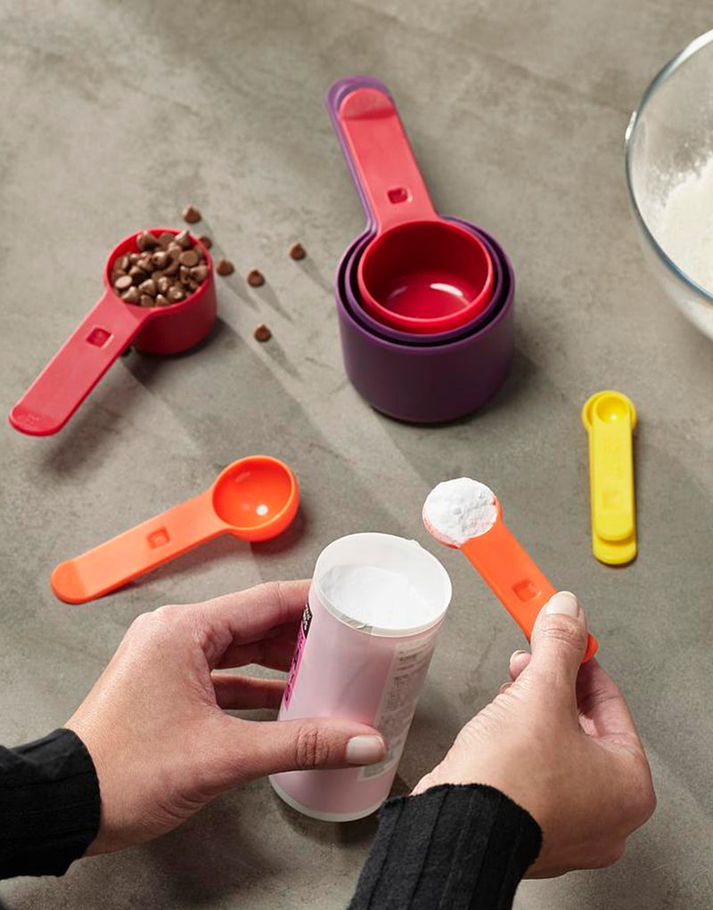 Präzision ist beim Backen entscheidend, und genau da glänzen die Nest™ glänzen. Diese kompakten, farbcodierten Becher sind eine praktische Ergänzung für Ihr Backzubehör, sodass jede Zutat perfekt abgemessen wird. Diese sind besonders wichtig zum Backen, aber entdecken Sie unseren Artikel über die wichtigen Utensilien für Bäcker, um mehr zu erfahren.