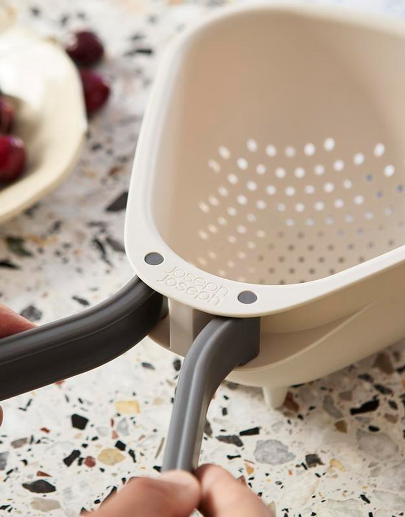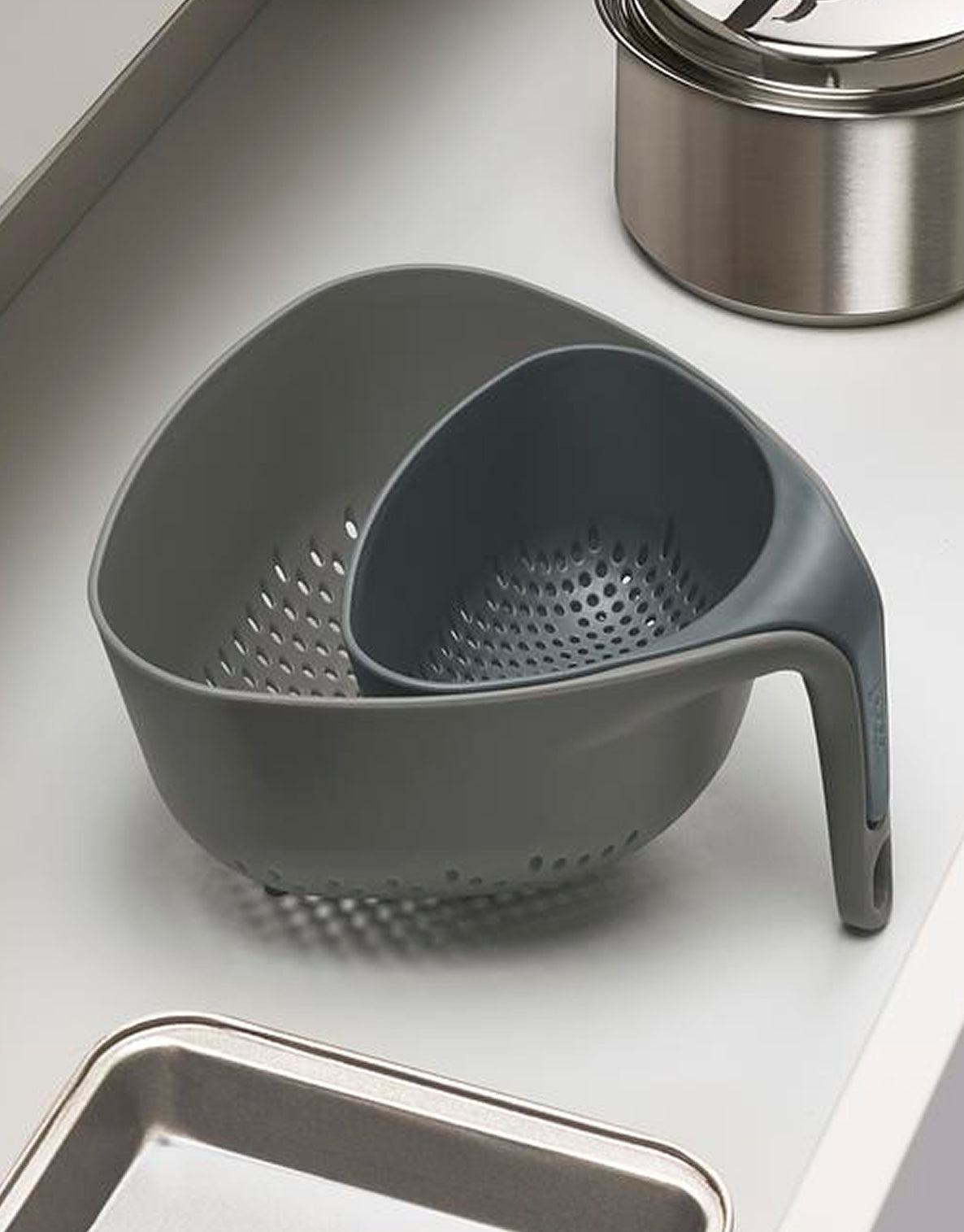 Ein stabiles Sieb ist ein Muss für alle Pasta-Liebhaber. The Nest™-Siebe sind stapelbar, platzsparend und perfekt zum unkomplizierten Waschen von Gemüse oder Abtropfen von Spaghetti. Darüber hinaus verfügen unsere neuen Abtropfsiebe über klappbare Griffe, die Ihnen noch mehr Stauraum bieten, und sind in zwei verschiedenen Größen zum Waschen und Abtropfen von kleinen Früchten bis hin zu größeren Mahlzeiten erhältlich.